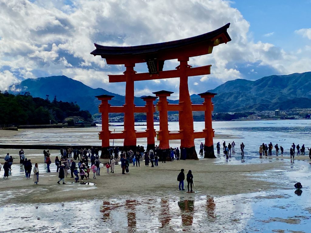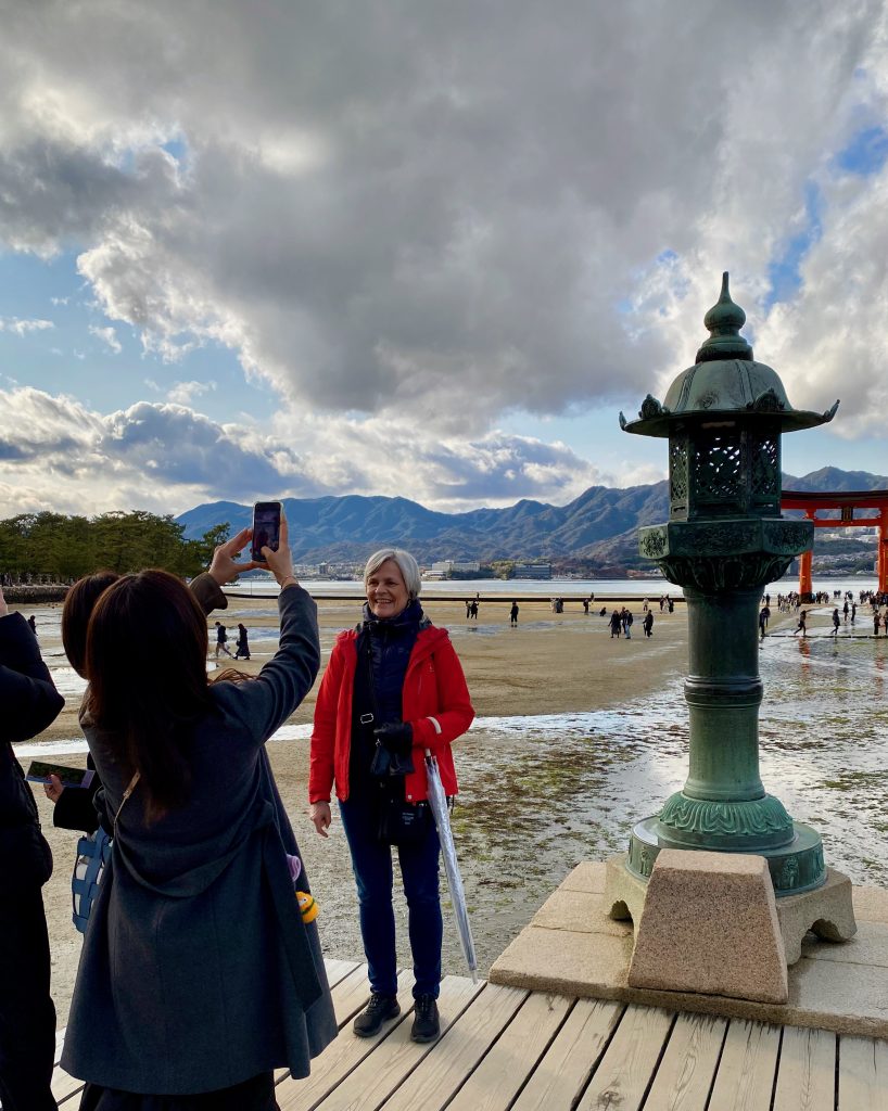 Arja keksi kolmannelle vierailupäivälle hienon kohteen: Itsukushiman saari (Myajima). Menimme sinne varsin nopealla pikaveneellä, jonka kyytiin mahtui noin 30 matkustajaa. Paikalla on mielenkiintoinen historia,sillä siellä sijaitsee pyhättö, jonka alkuperä on 500-luvulta, ja joka on ollut nykyisessä muodossaan vuodesta 1168. Pyhättö on rakennettu laiturille! Saaren pyhyydestä johtuen tavalliset ihmiset eivät saaneet astua saarelle, joten sinne tultiin vedessä olevan, kelluvalta näyttävän portin, toriin läpi. Myajima on Japanin suosituimpia turistinähtävyyksiä.
