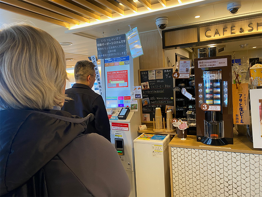 Laivalla Arja innostui jututtamaan Tokiolaista opiskelijaa, joka opiskeli kirjallisuutta Tokion yliopistossa. Kaveri sai hyvät naurut, kun näytin meidän kesämökiltä livekuvaa: ei kyllä näytä kesämökiltä kun pihassa on puoli metriä lunta! Kaveri ei ollut käynyt armeijaa, koska maan turvallisuus on annettu amerikkalaisten käsiin. Japanilaisen on aika haasteellista opetella englannin kieli, osaksi sen kirjallisen asun vuoksi. Suomalaiset hallitsevat kielen keskimäärin paljon paremmin, silti englannilla täällä pärjää, kun tarvittaessa google kääntää.